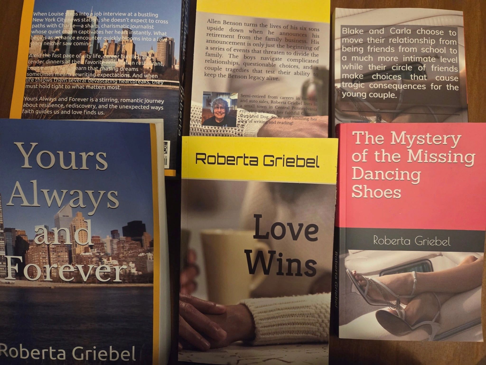 As a creative storyteller, I craft engaging stories that resonate with readers. My narratives span various genres, reflecting the complexities of human emotions and experiences. My favorite aspect of writing a novel is the care I take while breathing life into my characters. By the time my character has been fully developed in my mind, he/she/it has become a friend to me—someone I know so intimately that when they experience personal tragedy or a painful failure, I feel it deeply, and I strive to convey that feeling so that you, too, can experience it. This is the essence of my work as Roberta Griebel, Author.